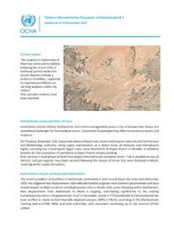 أصدر مكتب تنسيق الشؤون الإنسانية التابع للأمم المتحدة (OCHA) تحديثًا ميدانيًا حول الوضع في محافظة حضرموت حتى 14 ديسمبر 2025